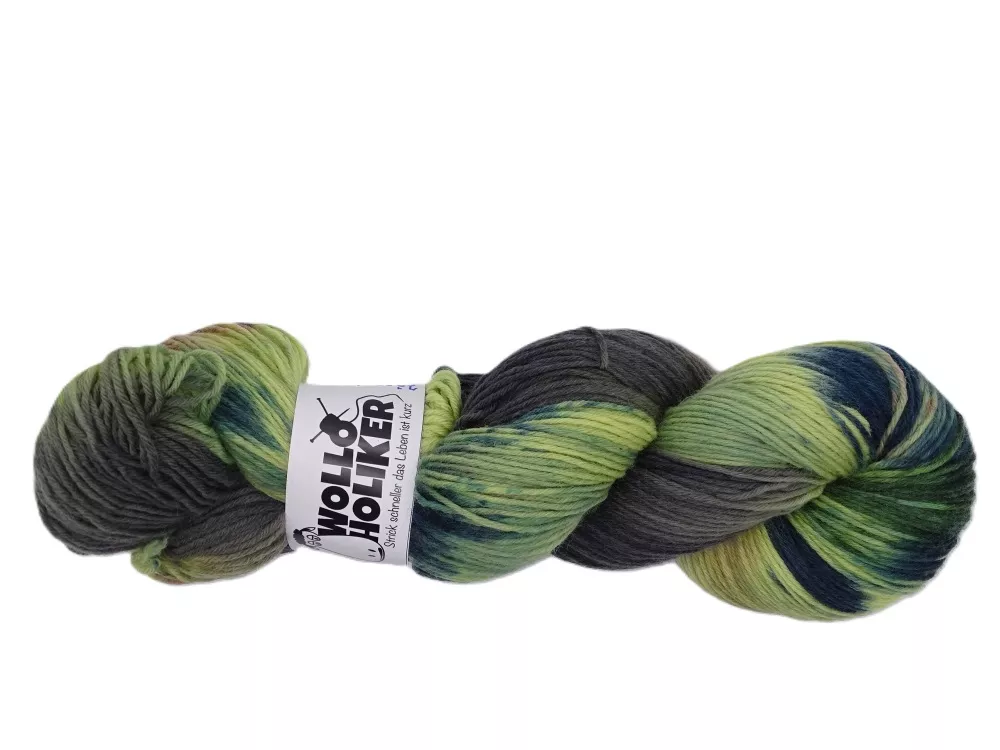 150 g Sockenwolle der Wolloholiker-Qualität Basic 6fach in der Färbung Jägerlatein – viel zu schade um „nur“ Socken daraus zu stricken.