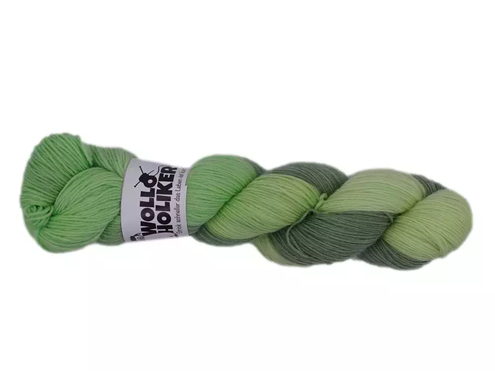 100 g Sockenwolle – mit Speckels – der Wolloholiker-Qualität Special effects in der Färbung Es grünt so grün – viel zu schade um „nur“ Socken daraus zu stricken.
