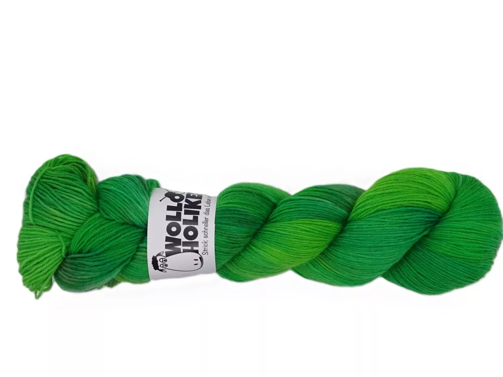 100 g Sockenwolle – mit Speckels – der Wolloholiker-Qualität Special effects in der Färbung Froschkönig – viel zu schade um „nur“ Socken daraus zu stricken.