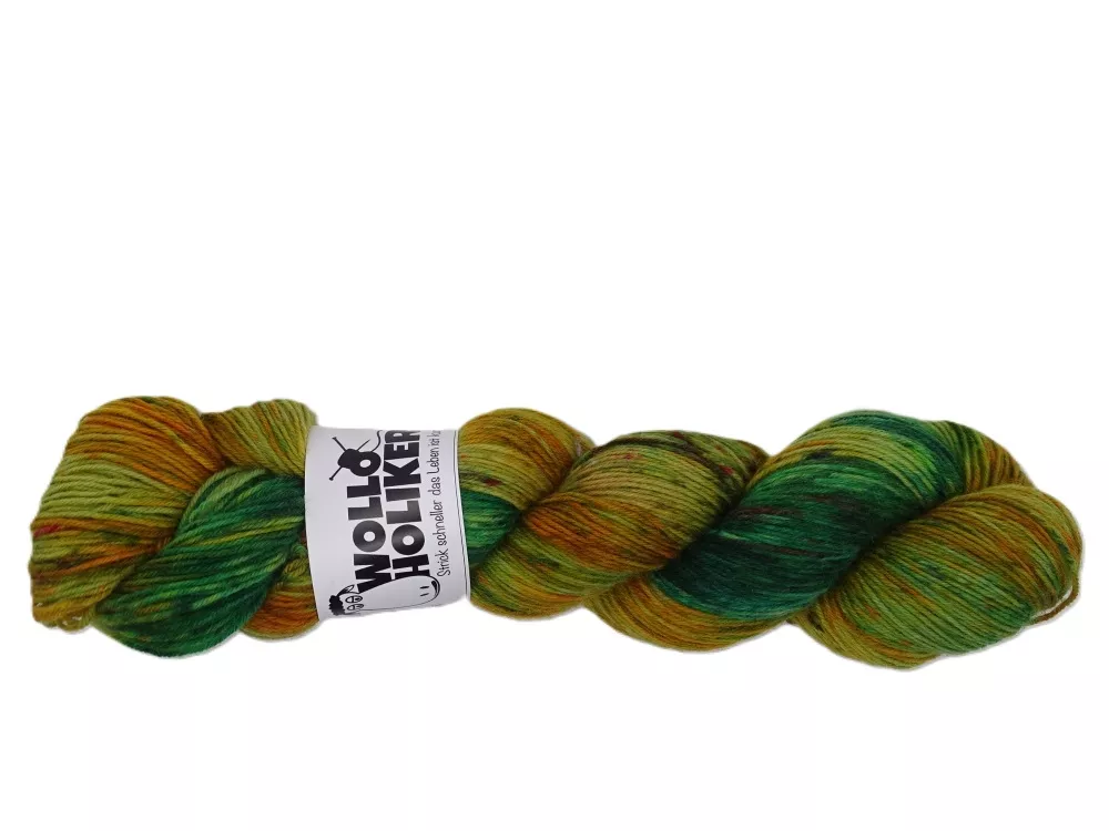 100 g Sockenwolle – mit Speckels – der Wolloholiker-Qualität Special effects in der Färbung Herbst – viel zu schade um „nur“ Socken daraus zu stricken.