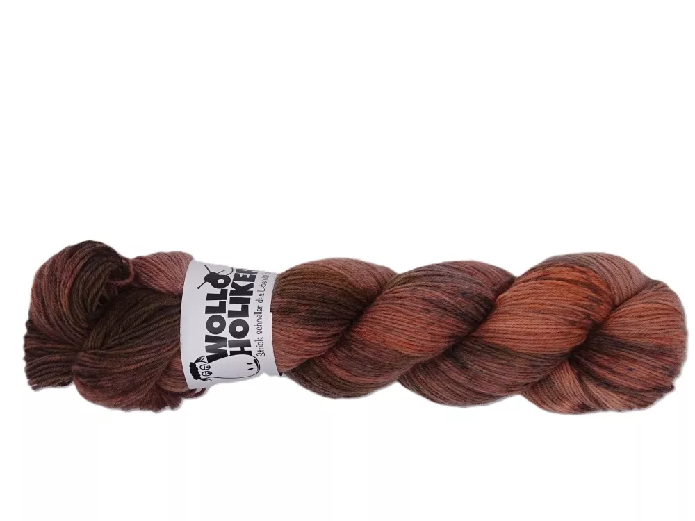 100 g Sockenwolle – mit Speckels – der Wolloholiker-Qualität Special effects in der Färbung Maroni – viel zu schade um „nur“ Socken daraus zu stricken.