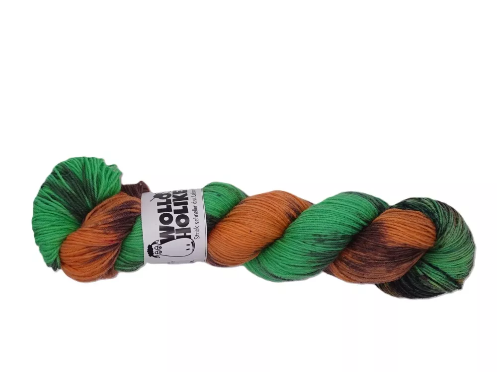 100 g Sockenwolle – mit Speckels – der Wolloholiker-Qualität Special effects in der Färbung Salty Orange – viel zu schade um „nur“ Socken daraus zu stricken.